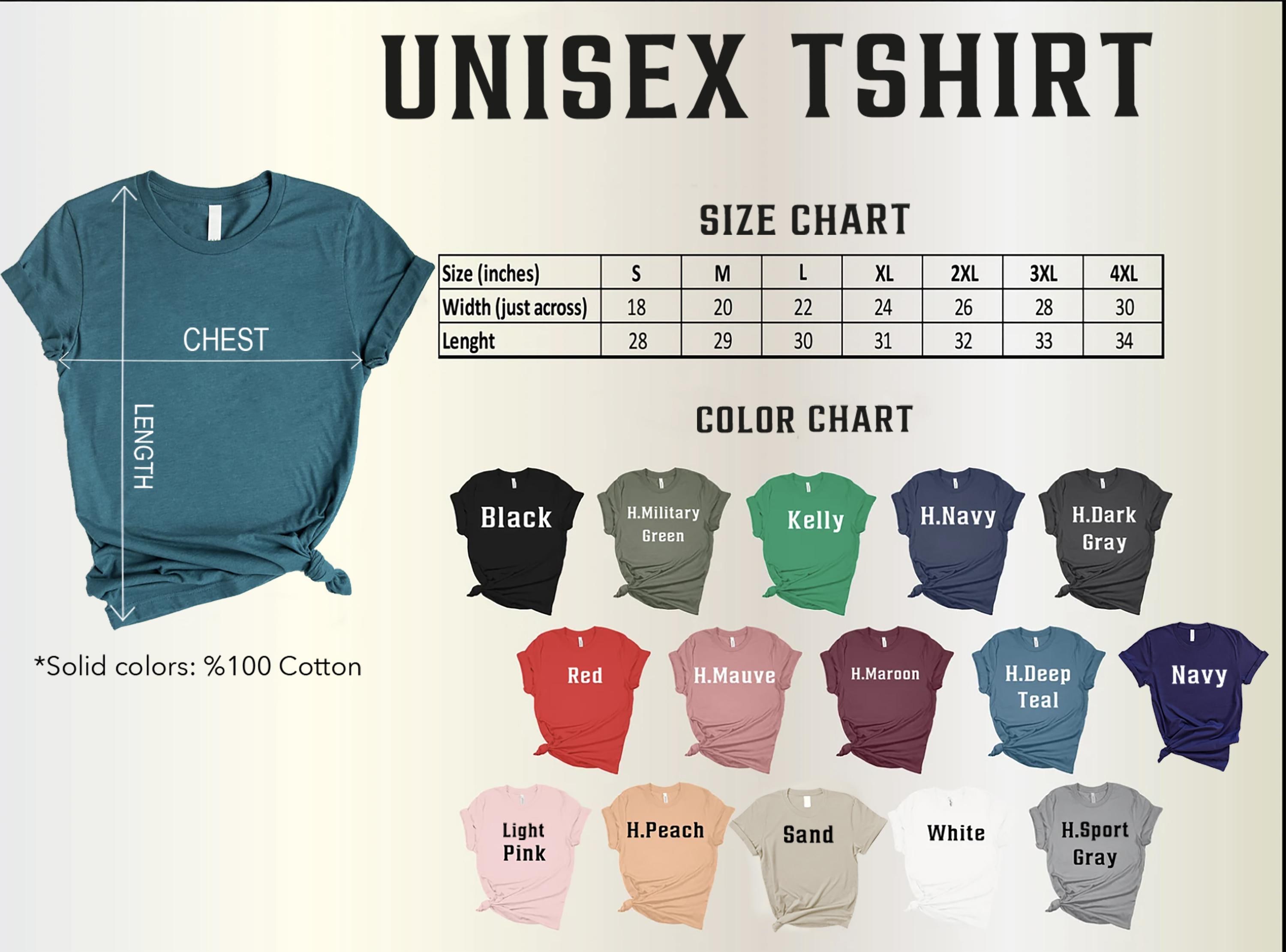 Please note that our shirts are made to order, so we do not accept returns or exchanges. Please refer to our color and size charts before placing your order. If you have any questions, please send us a message and we will be happy to clarify any sizing or color concerns.